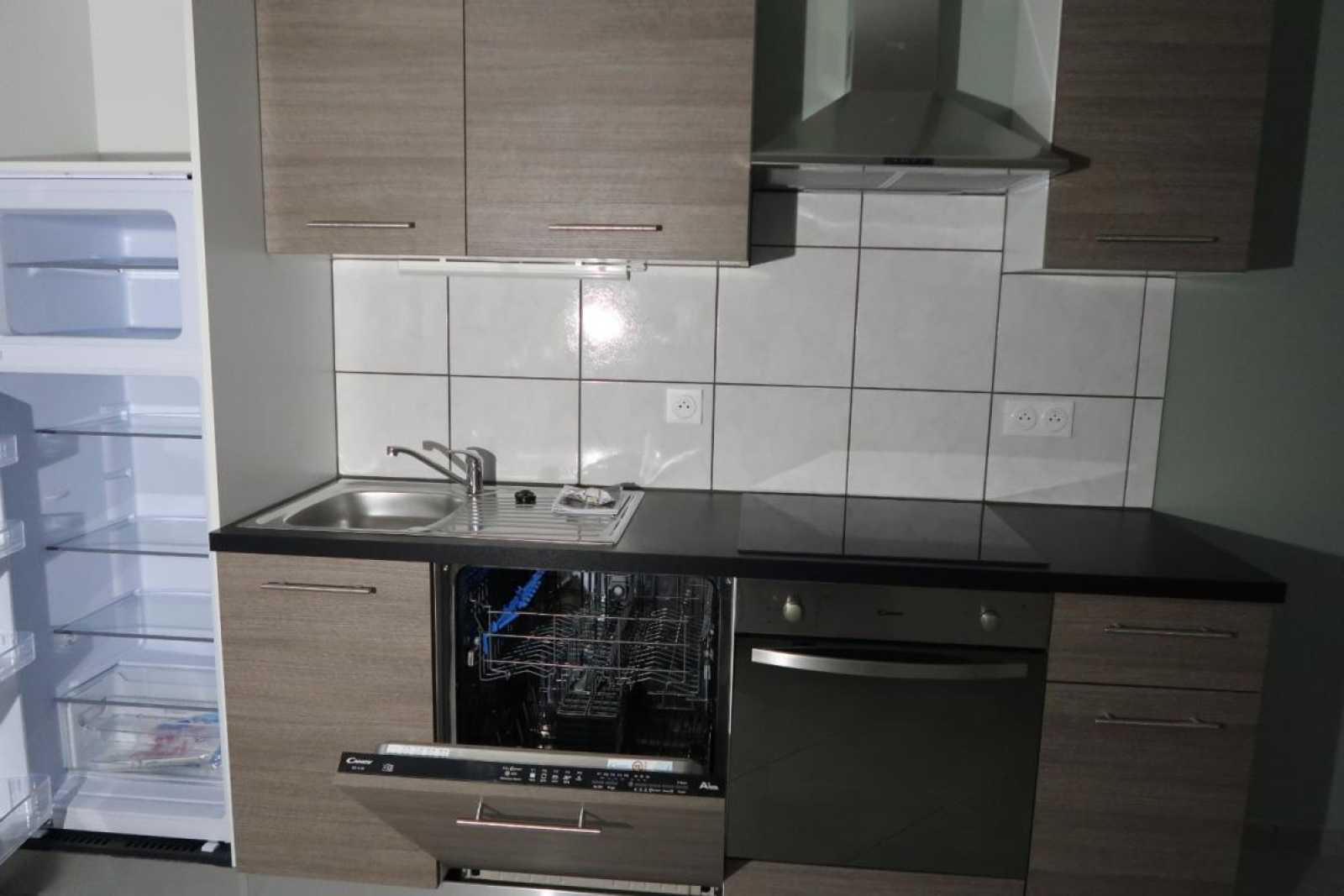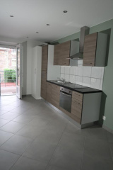 Il se compose d'une cuisine entièrement équipée avec électroménager : four, lave-vaisselle, frigo, plaque de cuisson et hotte, un grand plan de travail et placards muraux.