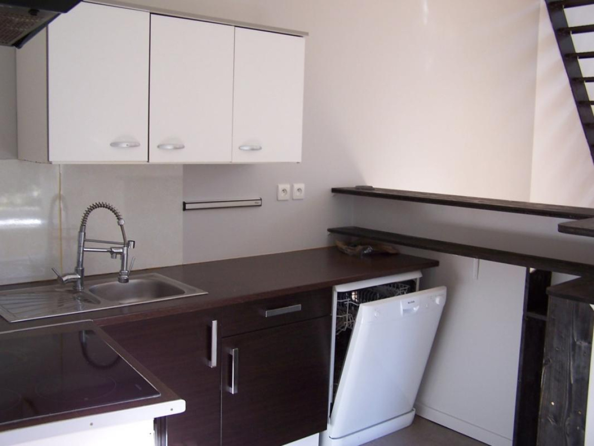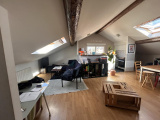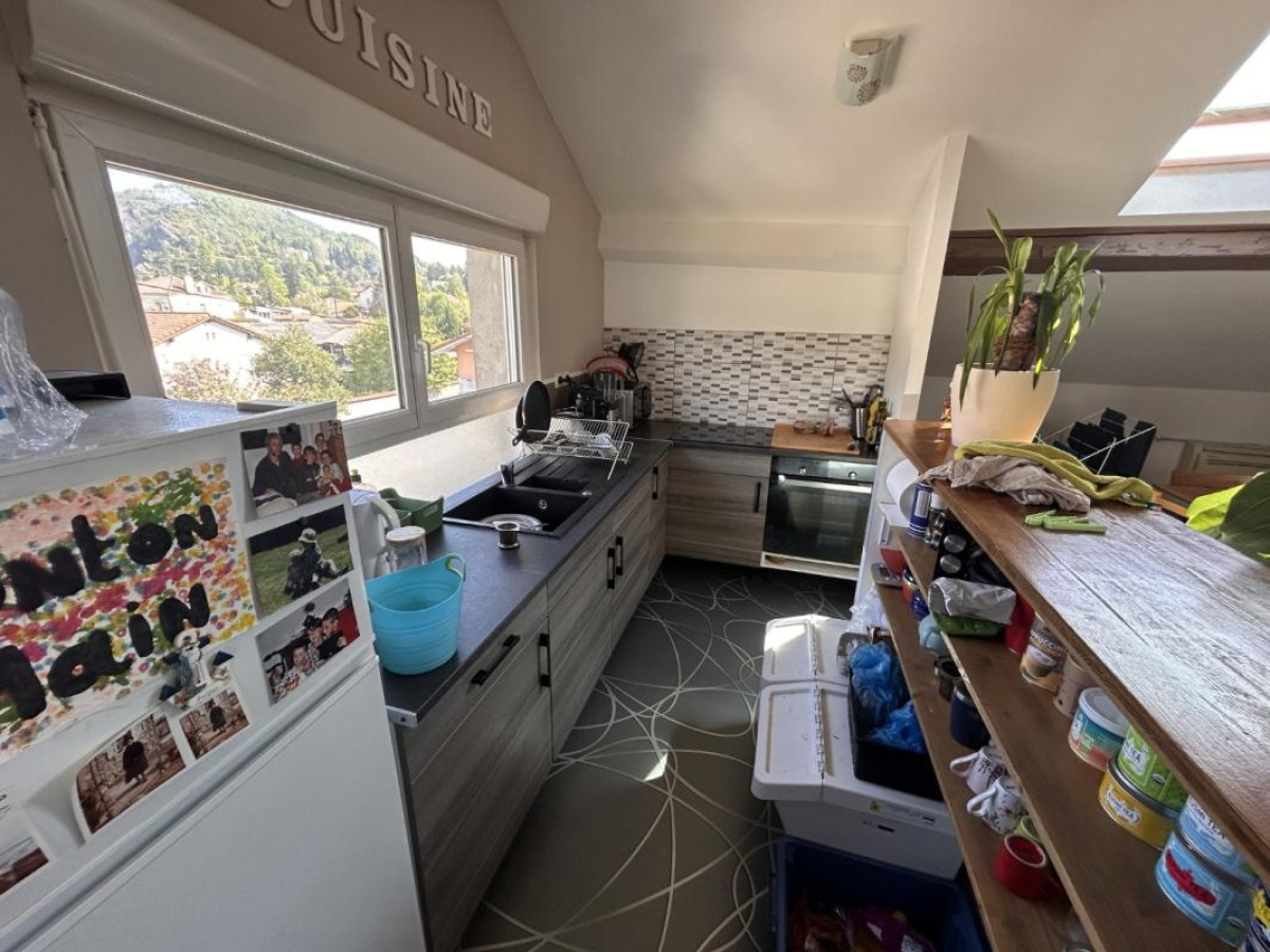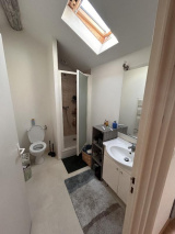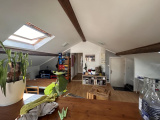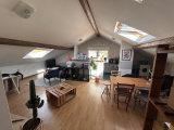 Il se compose d'une cuisine équipée et ouverte sur un séjour spacieux, très lumineux avec velux électriques, 2 chambres, salle d'eau carrelée avec vasque.