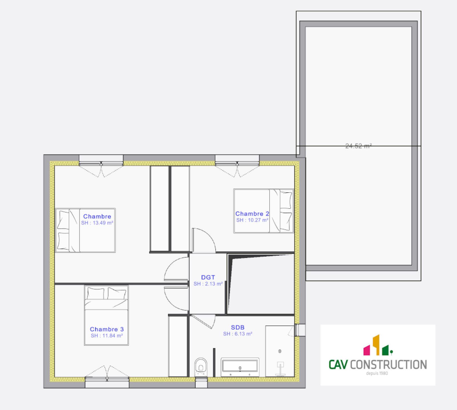En collaboration avec notre partenaire CAV Construction,Nous vous proposons une maison en R+2 de 90 m2 avec garage attenant ( 24 m2)
